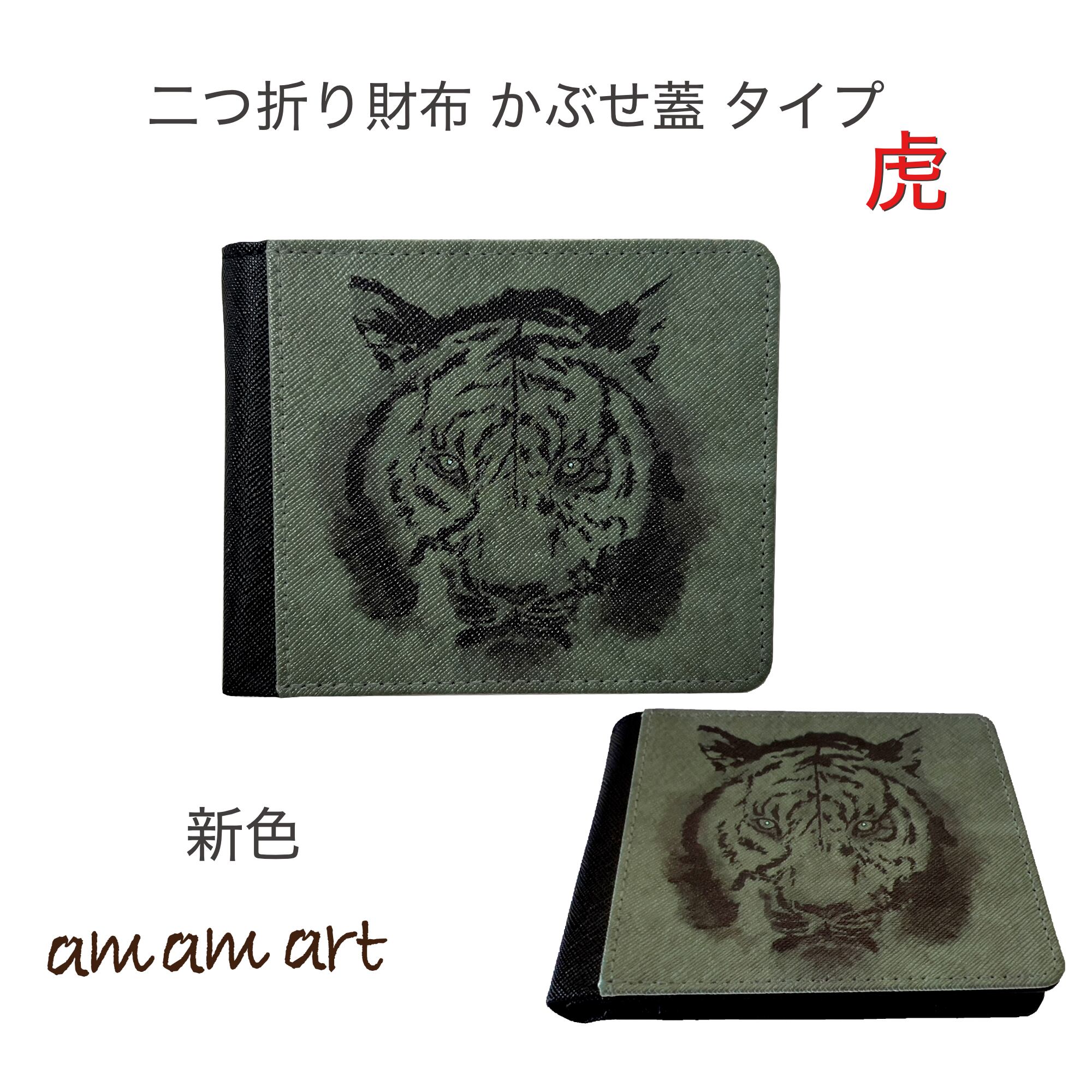 二つ折り財布 かぶせ蓋 タイプ「 虎 」cool な 寅 オリジナルデザイン スマート な印象の お財布 | amamart (アムアムアート) オンリーワン アートTシャツ オリジナルデザイン 手作りアクセサリー の通販サイト