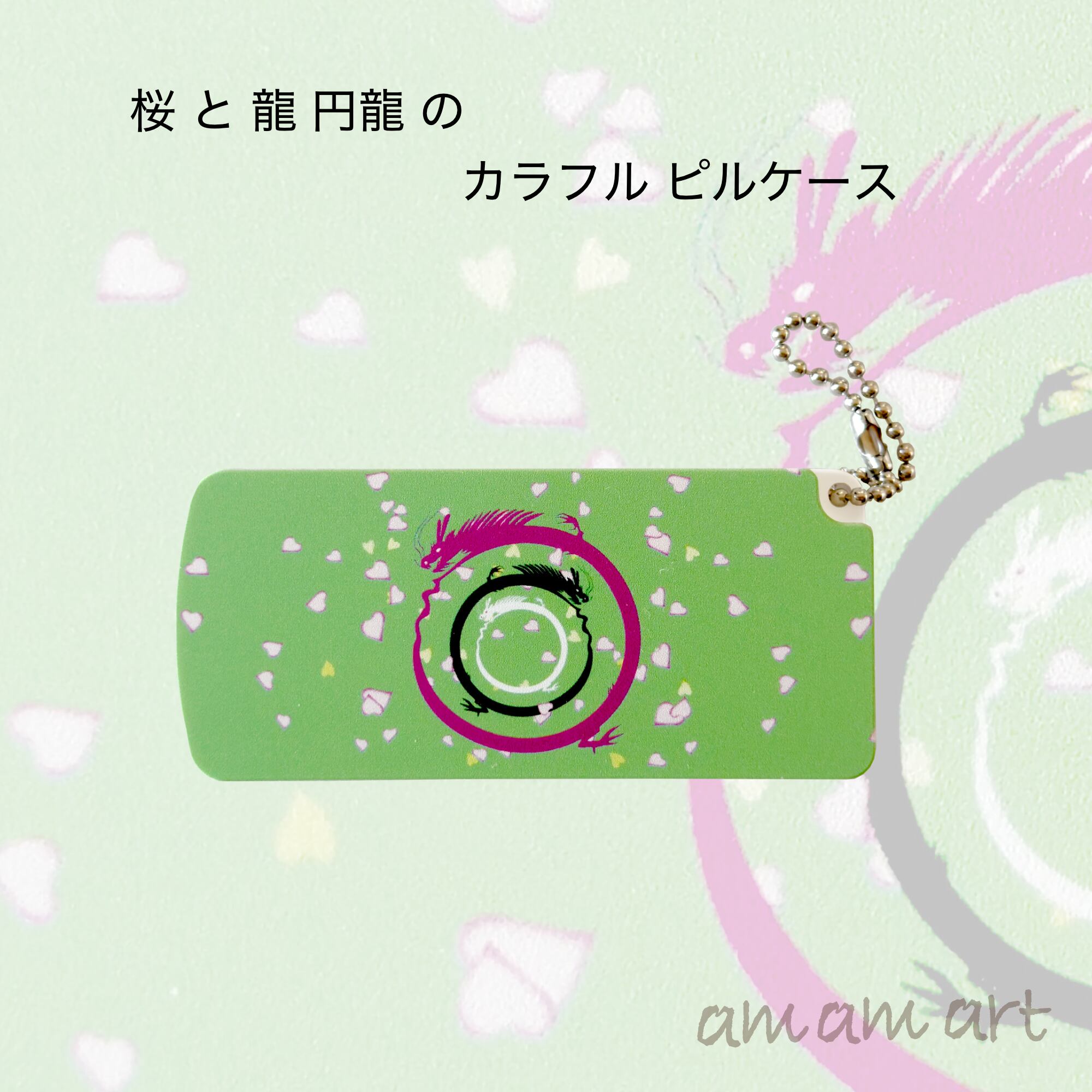 カラフル な 龍 桜の花びらが舞う 円龍 の ピルケース サプリメントケース お出かけのお供にいかがですか?
