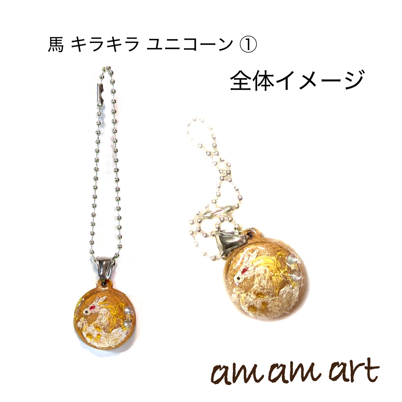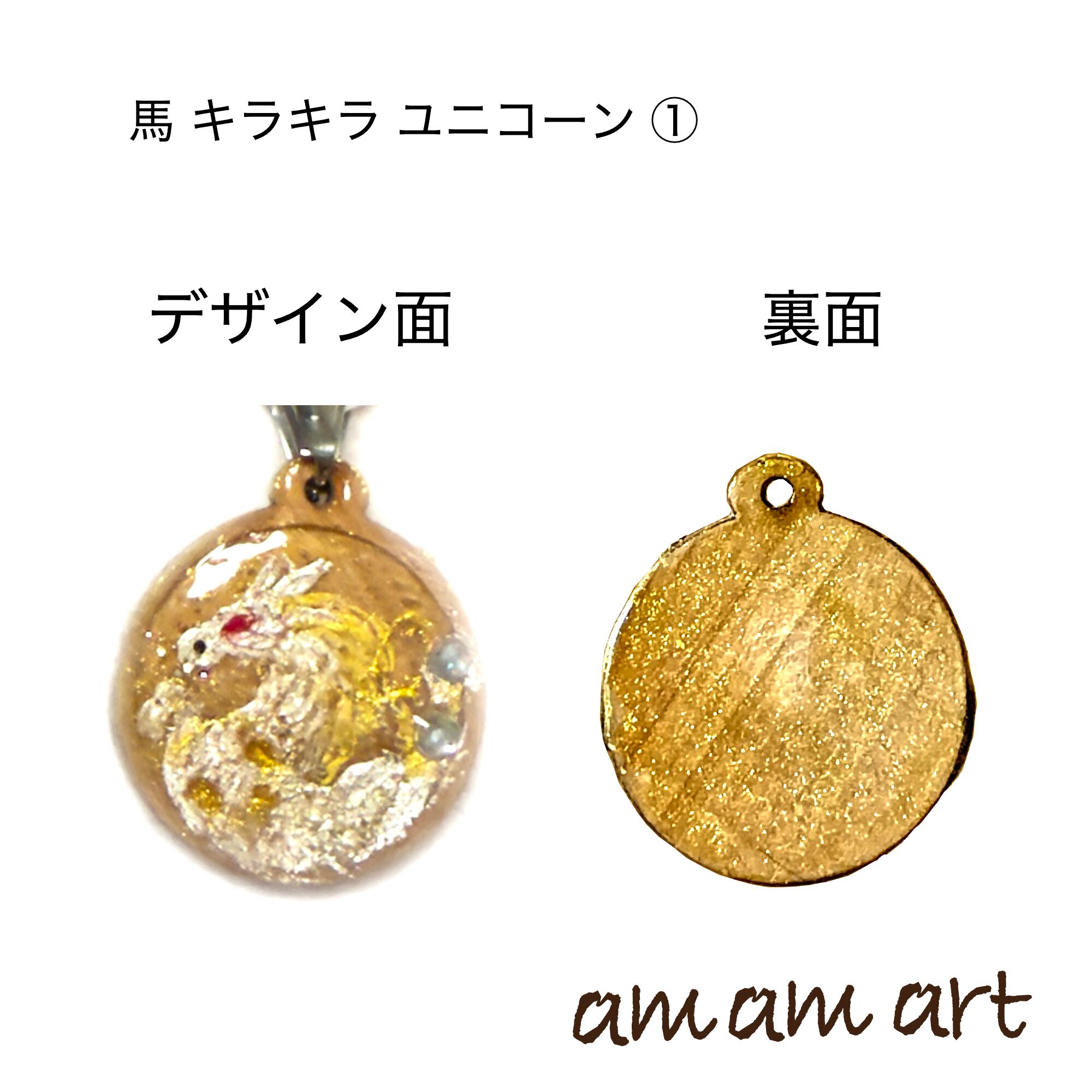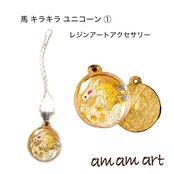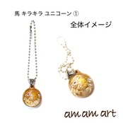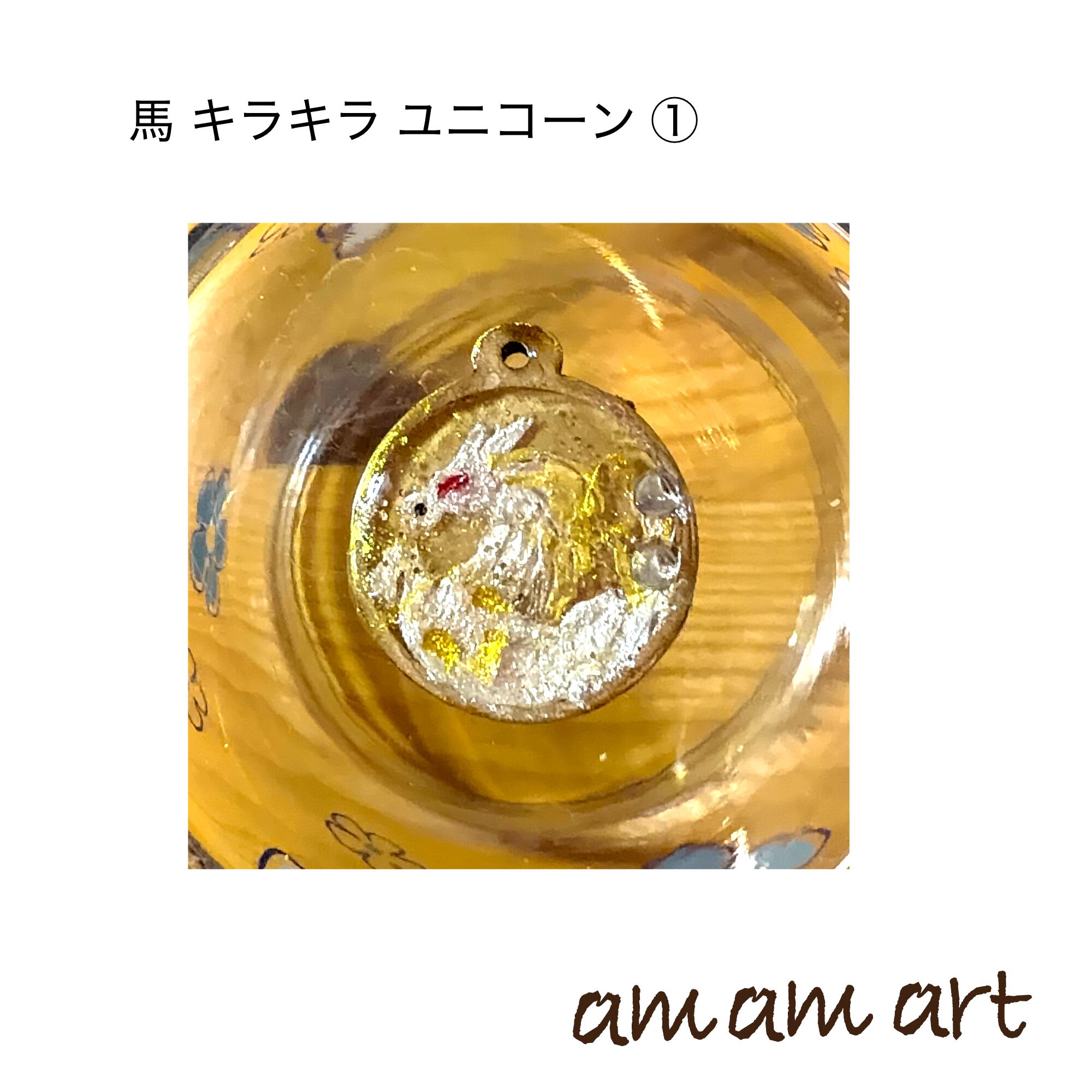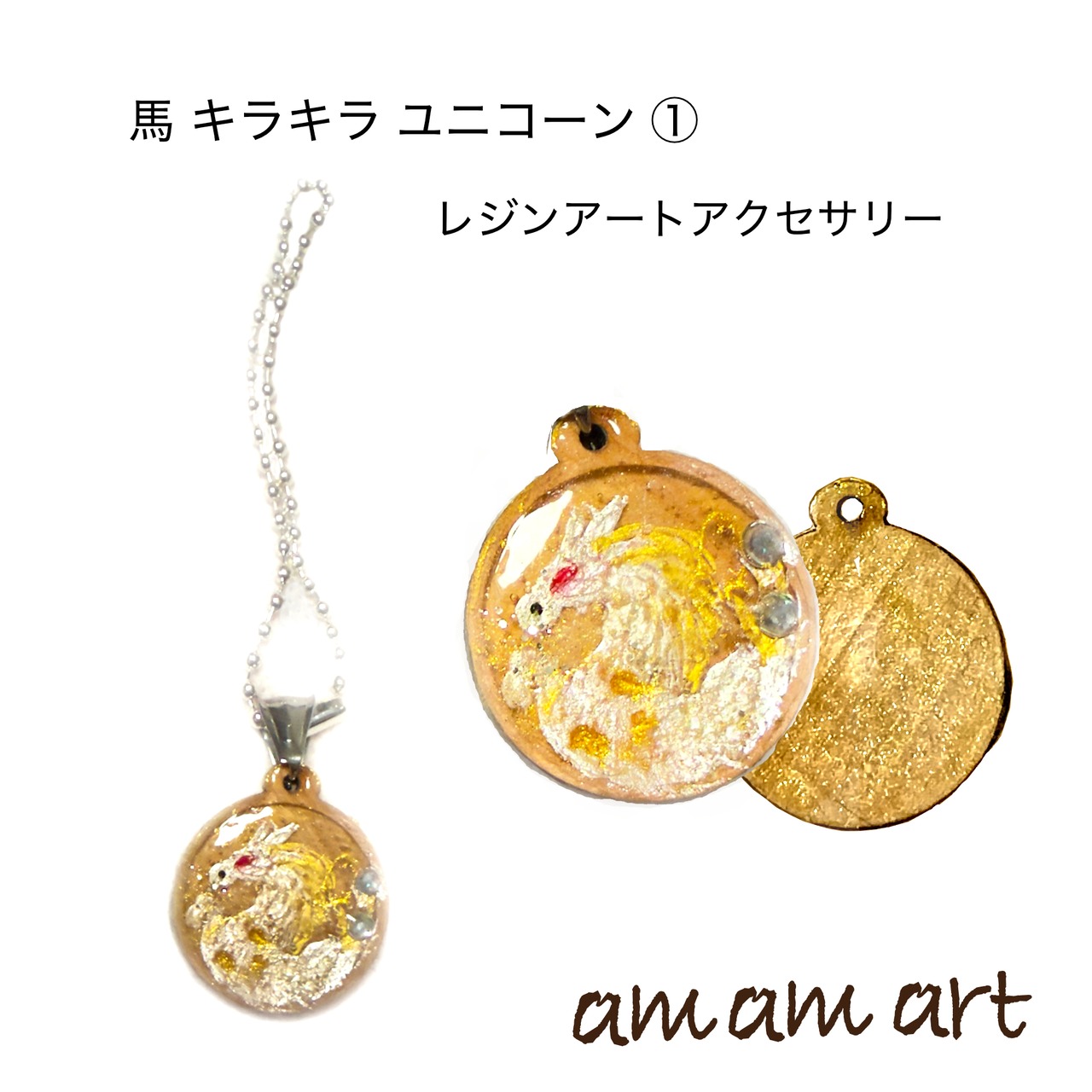 馬 キラキラ ユニコーン ① レジンアクセサリー ペンダントトップ 木製台座