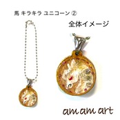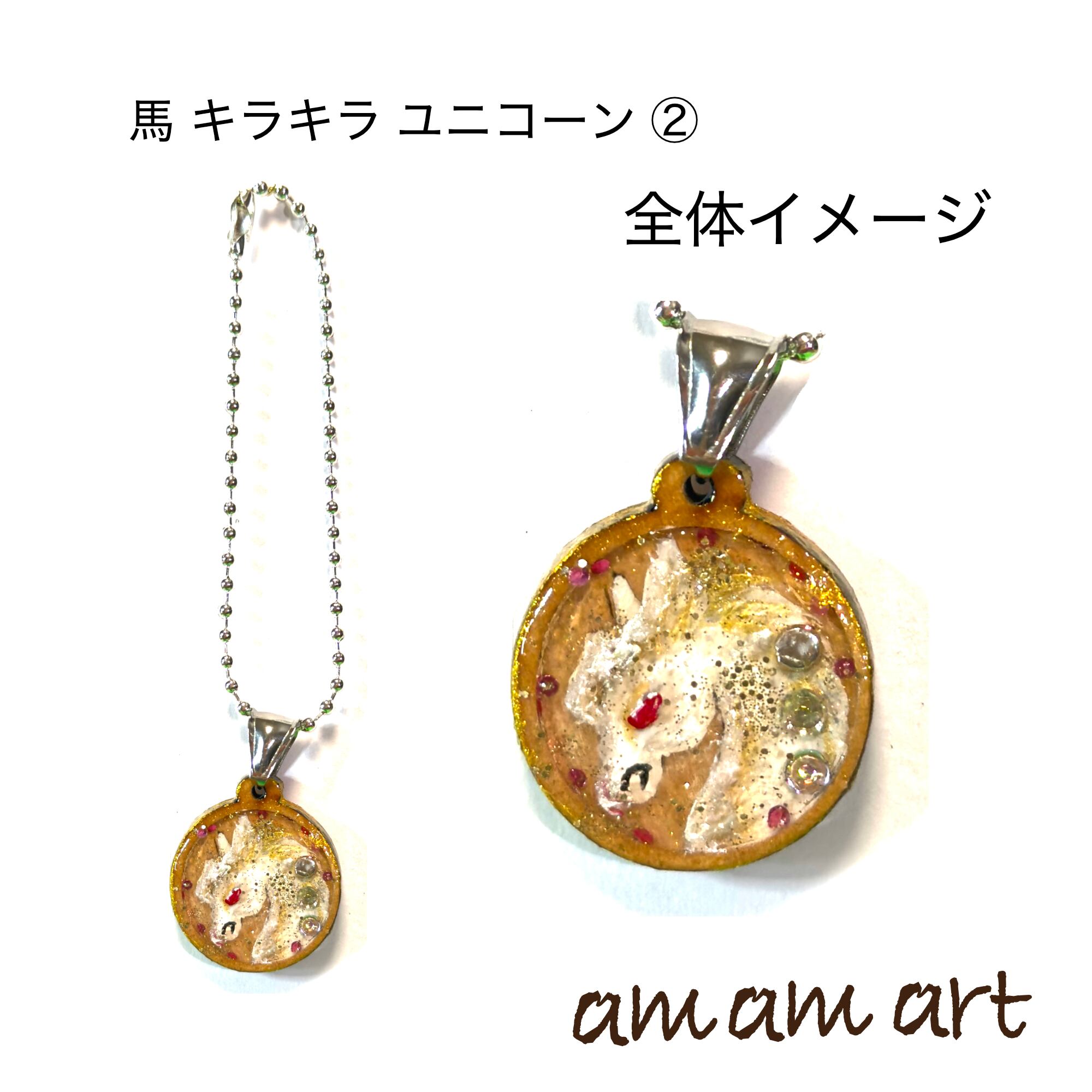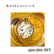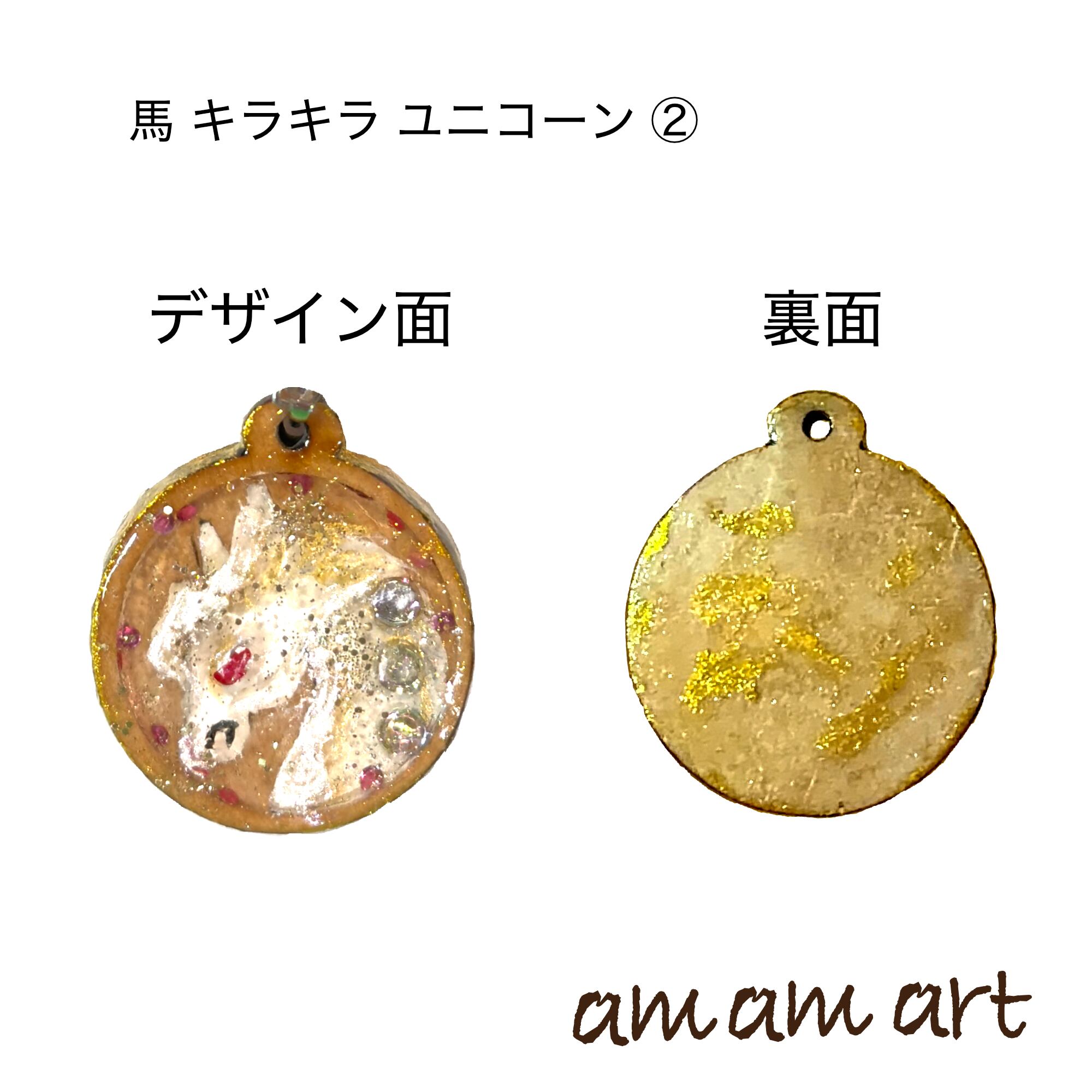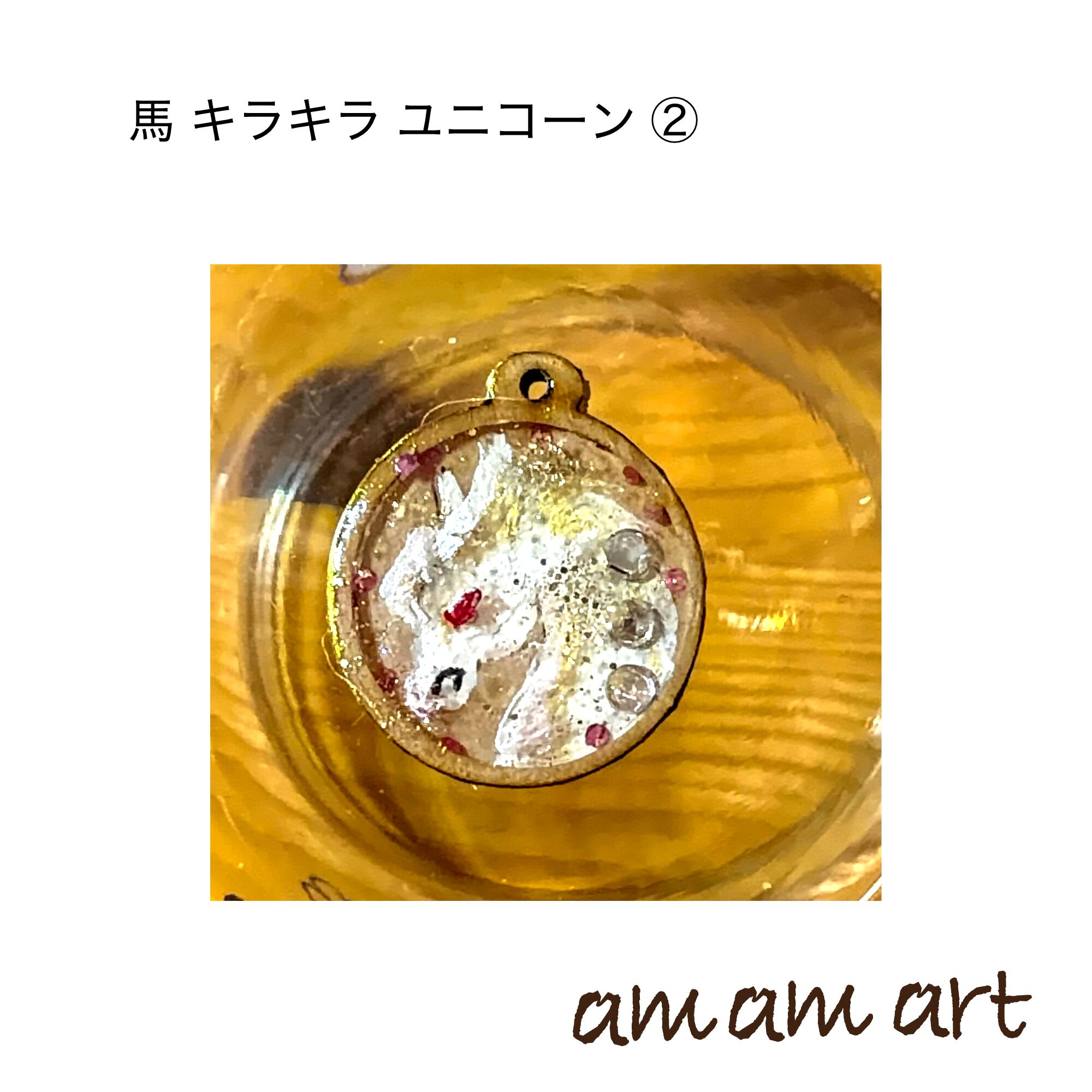 馬 キラキラ ユニコーン ② レジンアクセサリー ペンダントトップ 木製台座