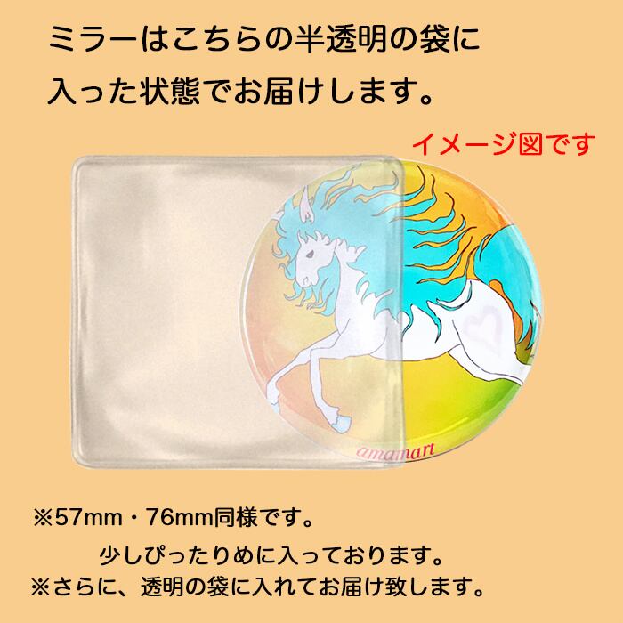 デザインミラー夢の国の馬は、直径57mmと 76mmの2サイズがございますが、