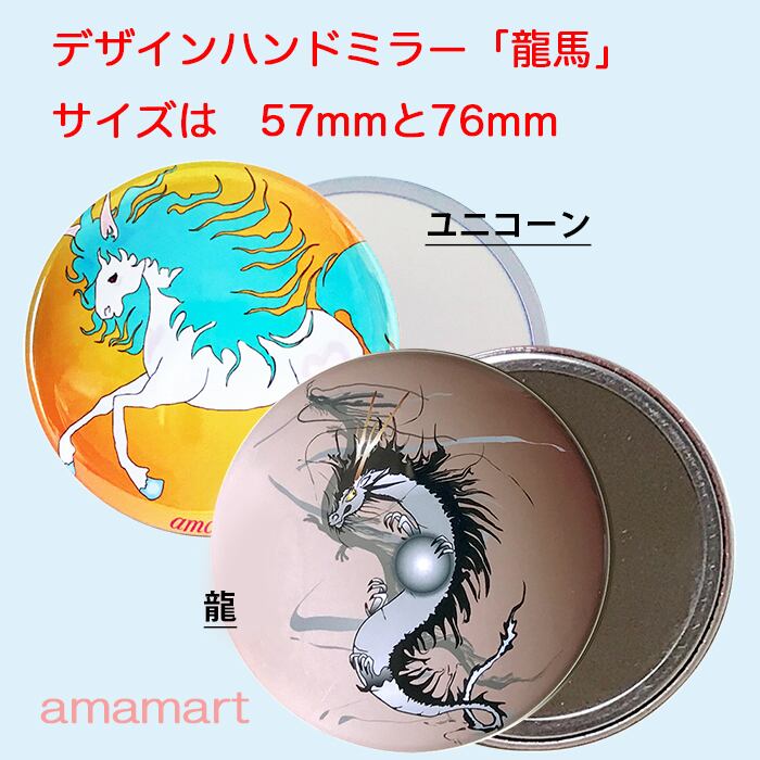 軽くて カッコイイ クール な オリジナルデザイン ハンドミラー 龍 父の日 のプレゼントにも! お出かけのお供に! (直径76mm) | amamart (アムアムアート) オンリーワン アートTシャツ オリジナルデザイン 手作りアクセサリー の通販サイト