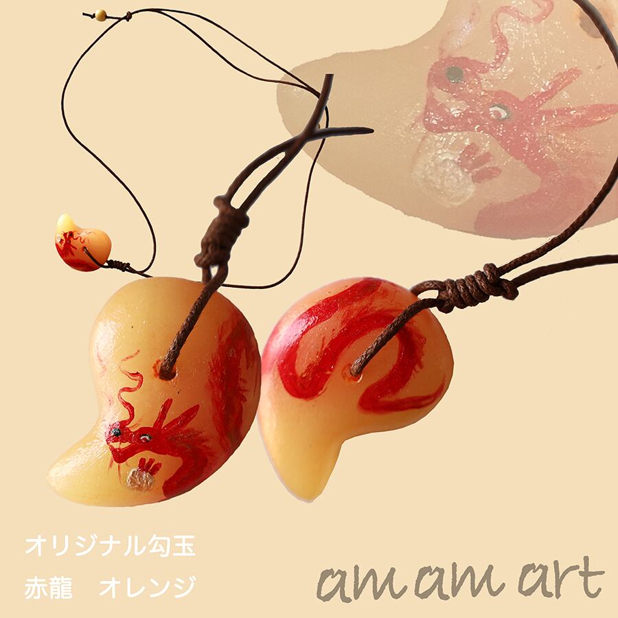 オリジナル 手作り 勾玉 オレンジ 「赤龍」 オンリーワンアクセサリー お守りにいかがですか? | amamart (アムアムアート) オンリーワン アートTシャツ オリジナルデザイン 手作りアクセサリー の通販サイト
