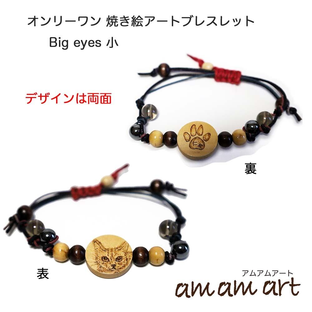 「 Big eyes 小 」 猫 ちゃん Wood バーニング ブレスレット ! オンリーワン サイズ調整可能 ! 大好きな ネコ ちゃんと いつも一緒に ! | amamart (アムアムアート) オンリーワン アートTシャツ オリジナルデザイン 手作りアクセサリー の通販サイト