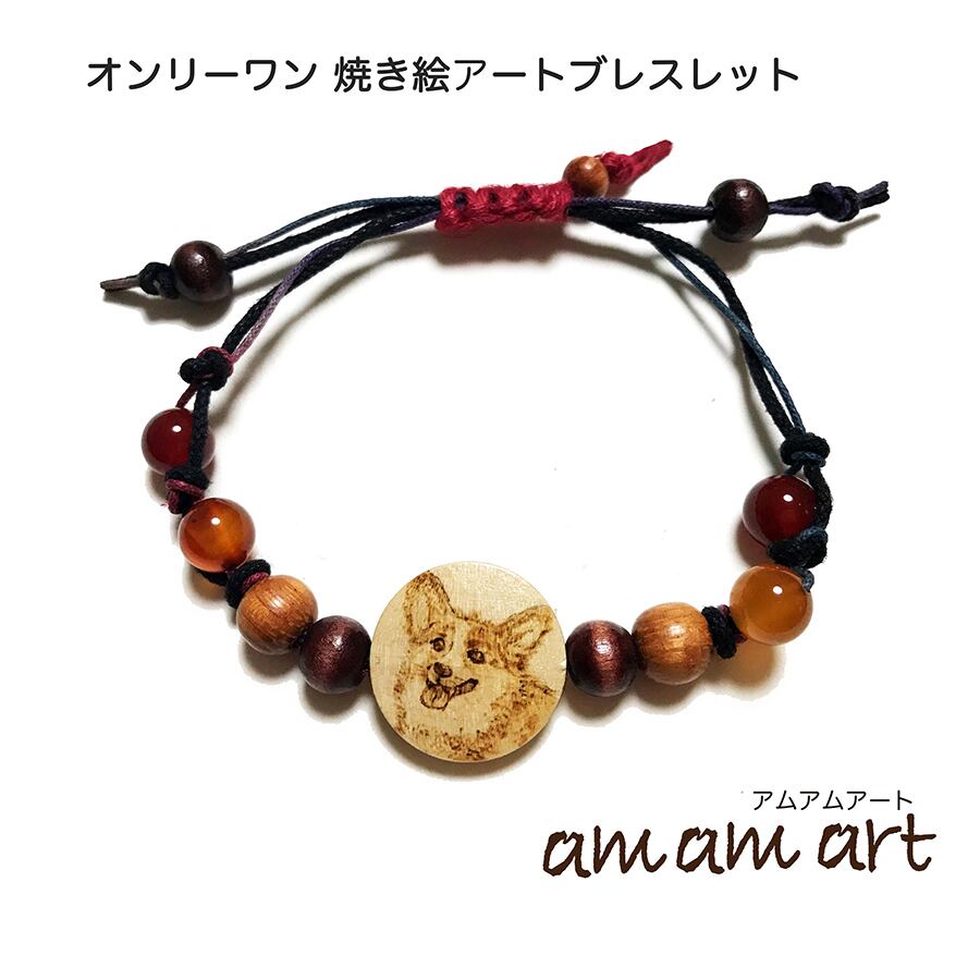 「 コーギー 笑顔 」 犬 ワン ちゃん Wood バーニング 焼き絵 手描き ブレスレット ! オンリーワン サイズ調整可能 ! 大好きな わん ちゃん といつも 一緒に! | amamart (アムアムアート) オンリーワン アートTシャツ オリジナルデザイン 手作りアクセサリー の通販サイト