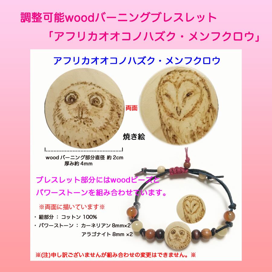 「 アフリカオオコノハズク メンフクロウ 」 ふくろう Wood バーニング ブレスレット ! オンリーワン サイズ調整可能 ! クール な フクロウ といつも 一緒に! | amamart (アムアムアート) オンリーワン アートTシャツ オリジナルデザイン 手作りアクセサリー の通販サイト