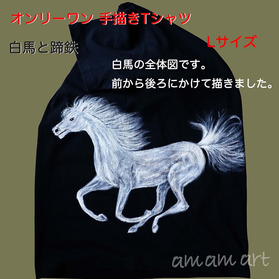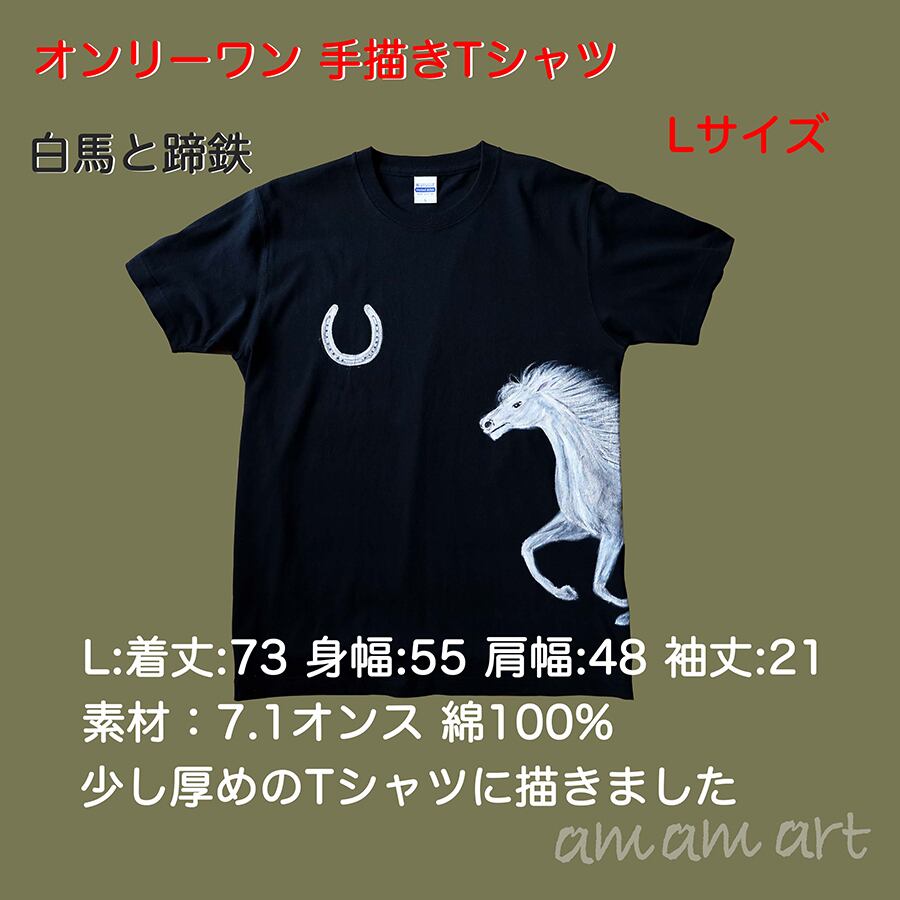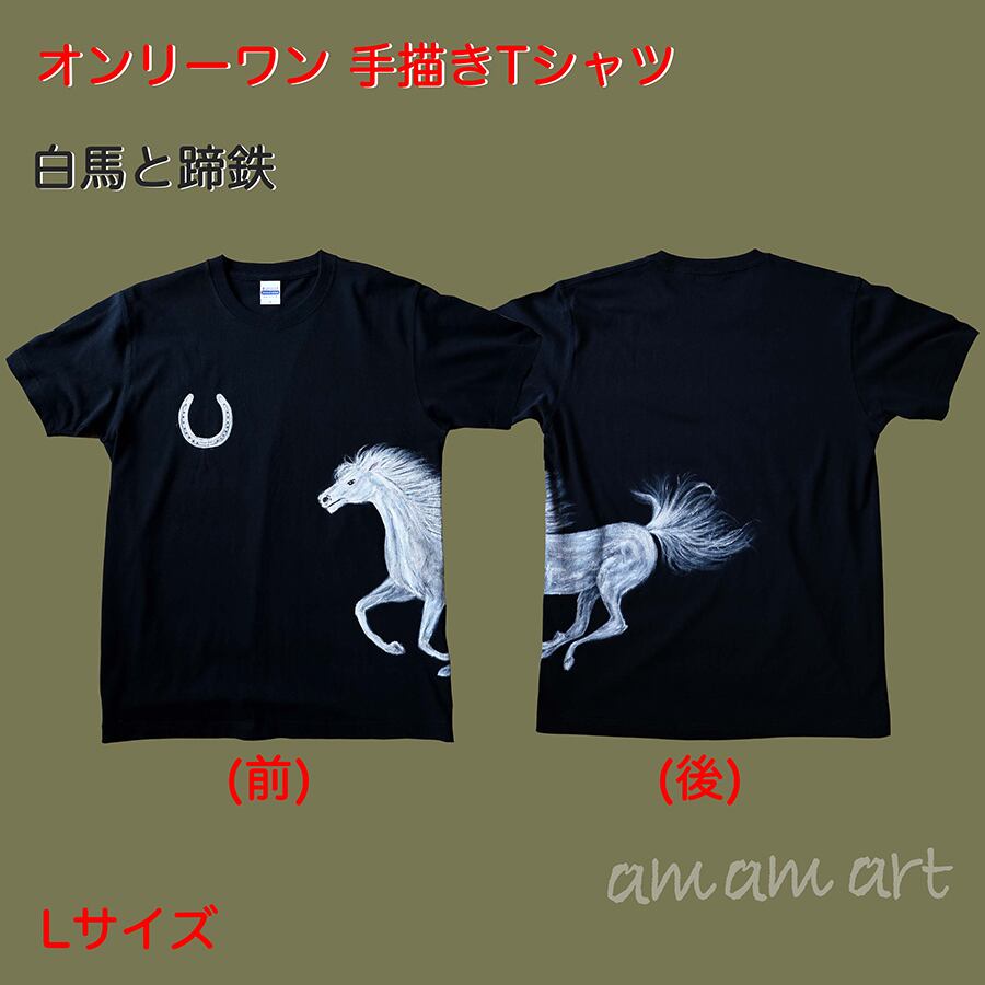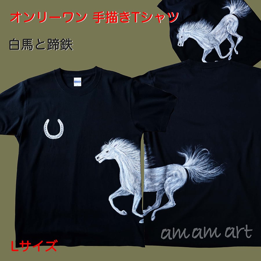 art Tシャツ オンリーワン 白馬 と 蹄鉄 L サイズ Tシャツ に 水彩 で描く 世界に1枚 の 手描き アート を 気軽に 着て歩こう! | amamart (アムアムアート) オンリーワン アートTシャツ オリジナルデザイン 手作りアクセサリー の通販サイト