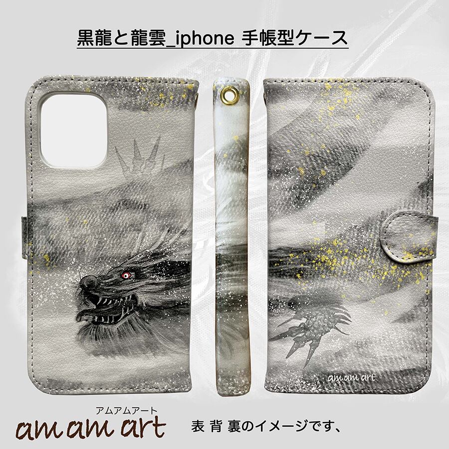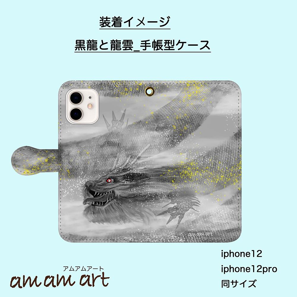 iPhone12/ 12pro 手帳型 スマホケース「 黒龍 と 龍雲 」 amamart の オリジナルデザイン | amamart (アムアムアート) オンリーワン アートTシャツ オリジナルデザイン 手作りアクセサリー の通販サイト