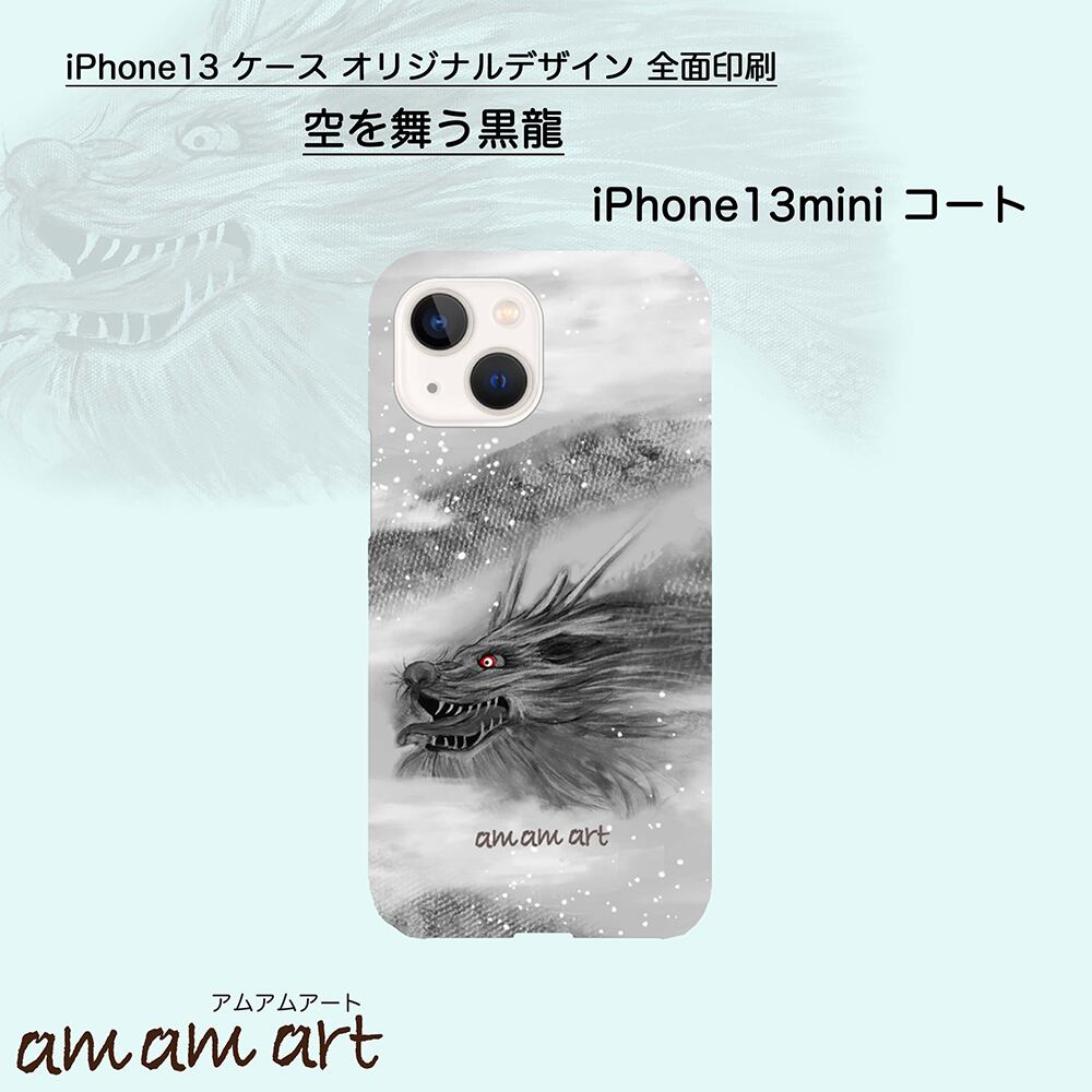 iPhone13 mini全面印刷 コート 「空を舞う黒龍」amamart オリジナルデザイン | amamart (アムアムアート) オンリーワン アートTシャツ オリジナルデザイン 手作りアクセサリー の通販サイト