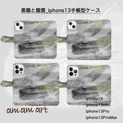iPhone13 手帳型 スマホケース「 黒龍 と 龍雲 」 amamart の オリジナルデザイン | amamart (アムアムアート) オンリーワン アートTシャツ オリジナルデザイン 手作りアクセサリー の通販サイト