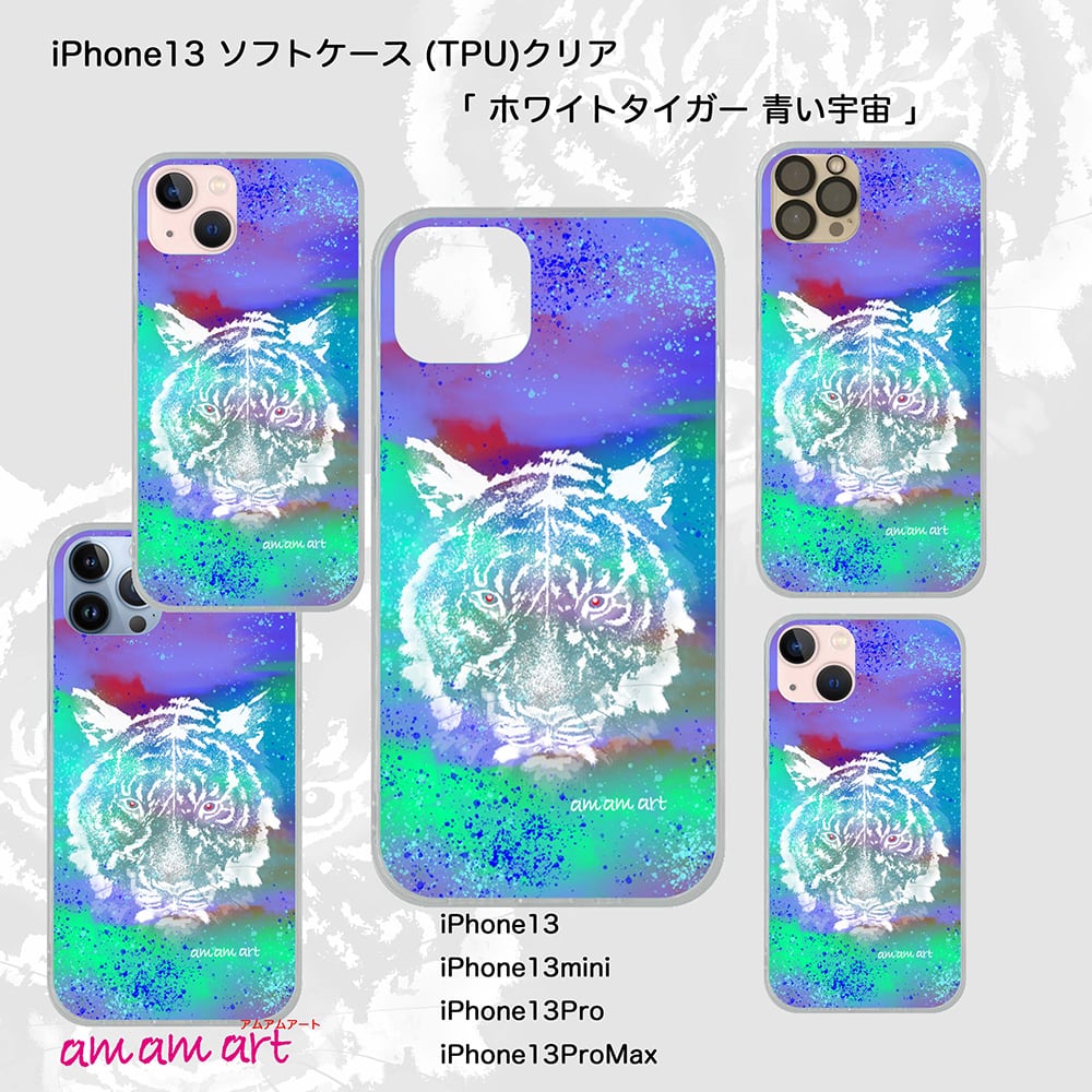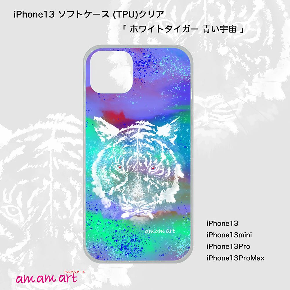 iPhone13 mini ソフトケース (TPU)クリア 「 ホワイトタイガー 青い宇宙 」 amamart オリジナルデザイン | amamart (アムアムアート) オンリーワン アートTシャツ オリジナルデザイン 手作りアクセサリー の通販サイト