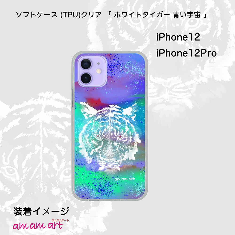 iPhone12/12Pro ソフトケース (TPU)クリア 「 ホワイトタイガー 青い宇宙 」 amamart オリジナルデザイン | amamart (アムアムアート) オンリーワン アートTシャツ オリジナルデザイン 手作りアクセサリー の通販サイト