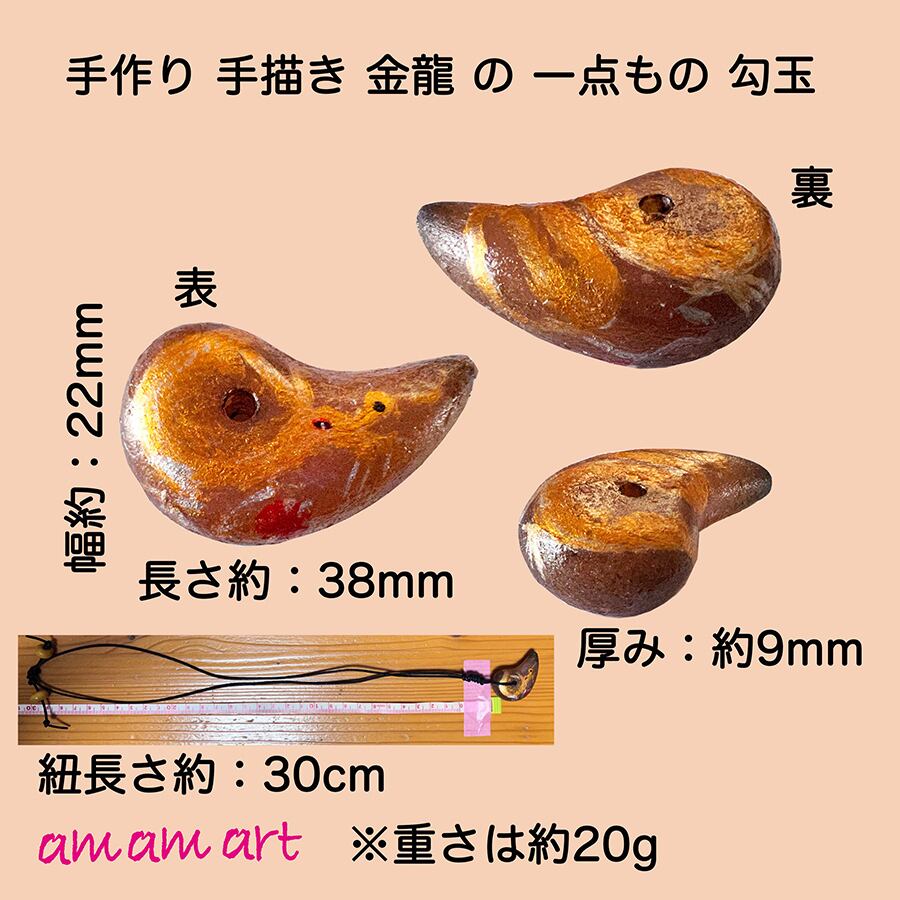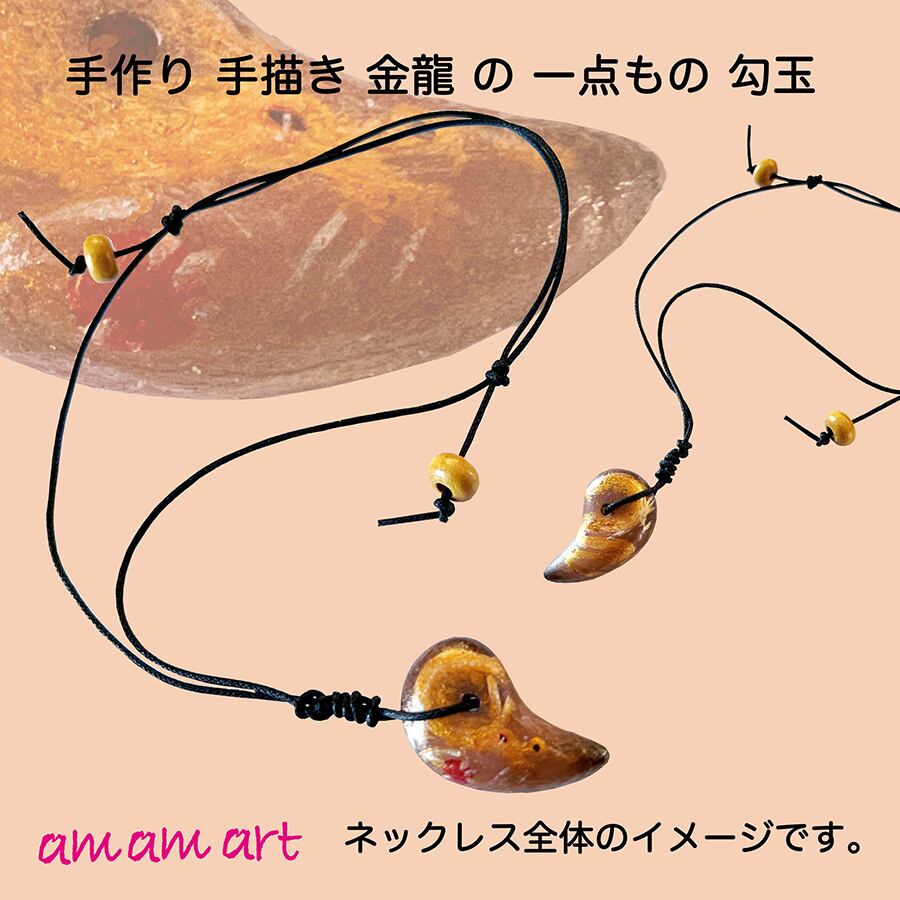 オリジナル 手作り 勾玉 ブラウン 「 金龍 」・ オンリーワン アクセサリー お守り にいかがですか? | amamart (アムアムアート) オンリーワン アートTシャツ オリジナルデザイン 手作りアクセサリー の通販サイト