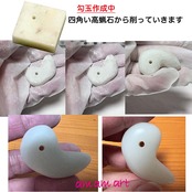 四角い状態の高蝋石(半透明でやわらかい石)から削って作っています。