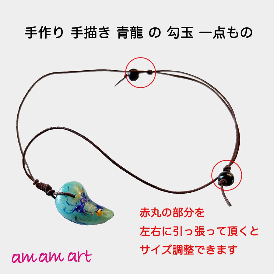 オリジナル 手作り 勾玉 ブルーグリーン 「 青龍 」・ オンリーワン アクセサリー お守り にいかがですか? | amamart (アムアムアート) オンリーワン アートTシャツ オリジナルデザイン 手作りアクセサリー の通販サイト