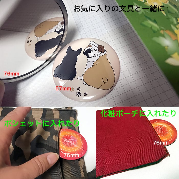 アムアムアートでデザインした原画を元にした缶バッチ型のハンドミラーです。