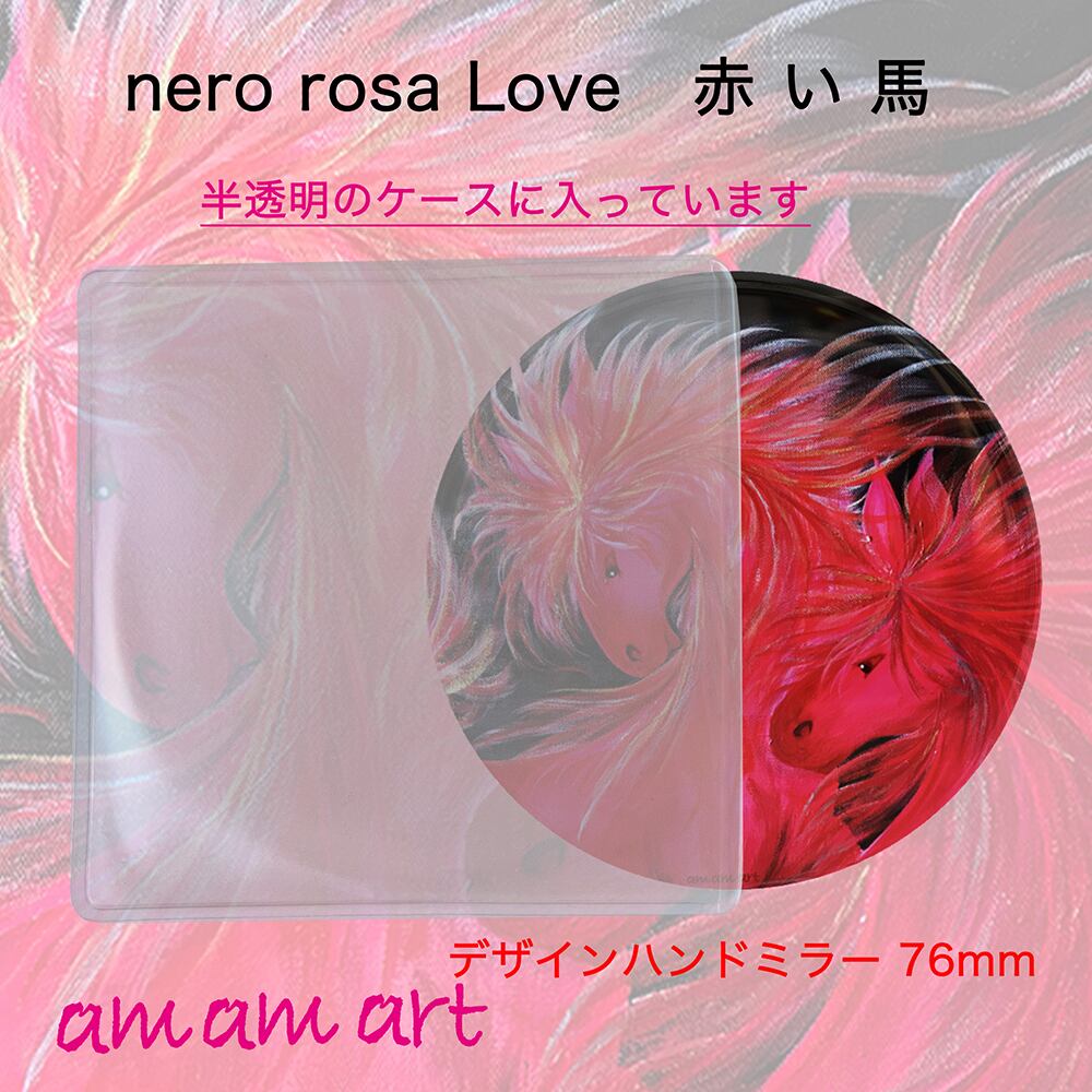赤 い 馬 nero rosa Love 軽くて 鮮やか クール な ハンドミラー コンパクトミラー お出かけのお供に プレゼント にも 直径76mm | amamart (アムアムアート) オンリーワン アートTシャツ オリジナルデザイン 手作りアクセサリー の通販サイト