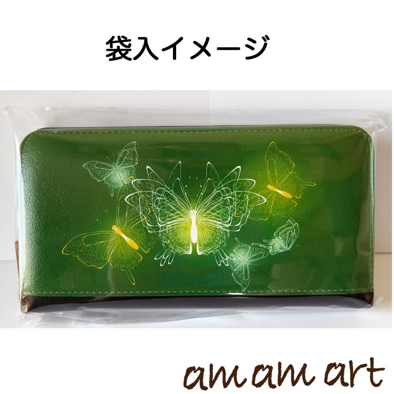長財布 財布 蝶 蝶々 ちょう チョウ 虫 昆虫 夢 ドリーム メルヘン ファンタジー ファンタスティック カラフル 明るい 春 夏 秋 冬 カードケース 男性 女性 グリーン 黄色