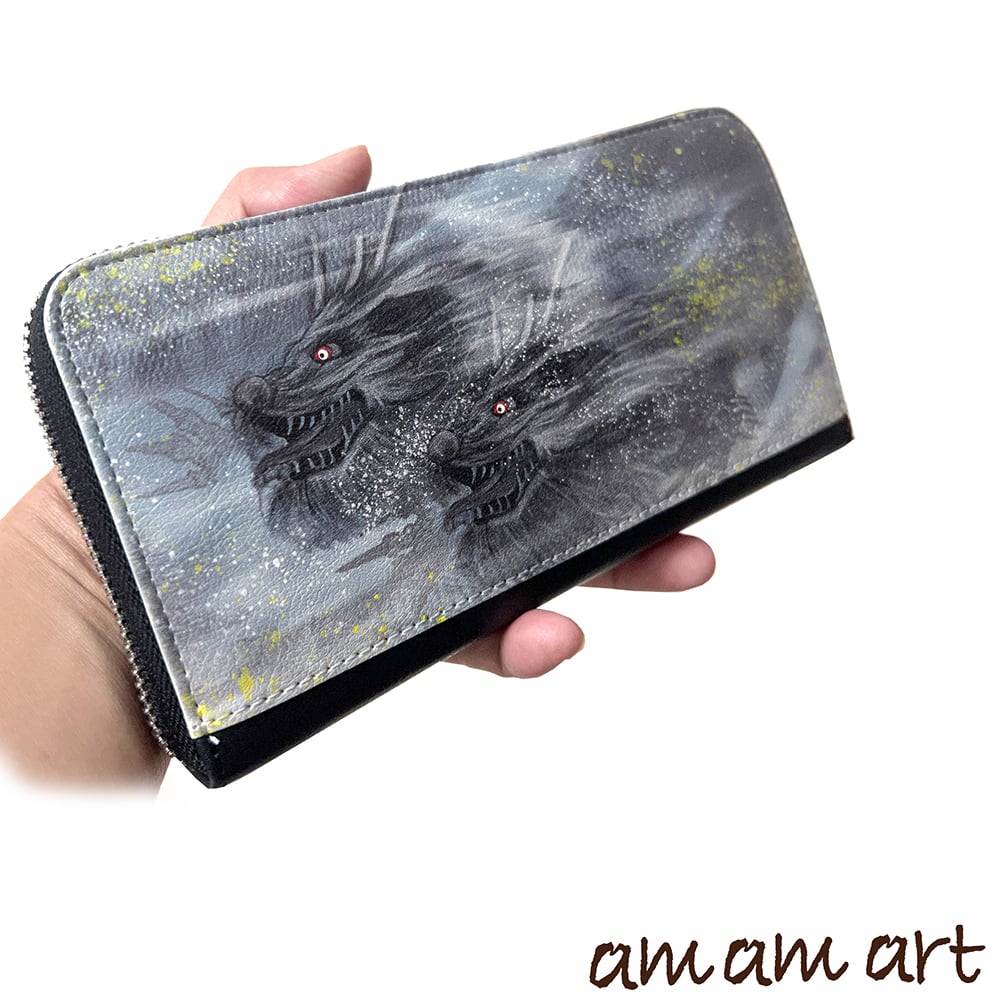 二つ折りタイプ の 財布 ファスナー タイプ 「 龍 黒龍 龍雲 」