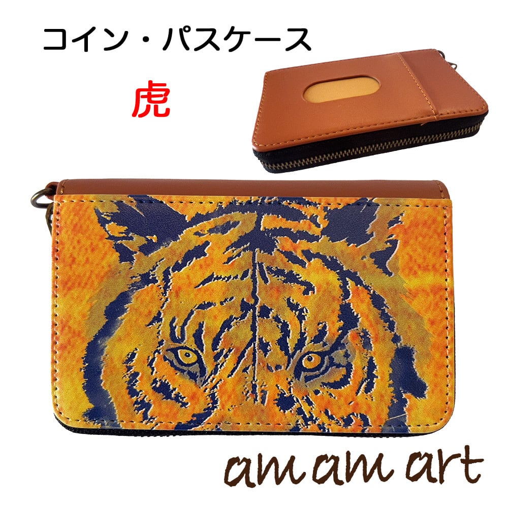 コイン パスケース 虎 クール な パスケース 小銭いれ ( 財布 ) オリジナルデザイン とら トラ 寅 | amamart (アムアムアート) オンリーワン アートTシャツ オリジナルデザイン 手作りアクセサリー の通販サイト