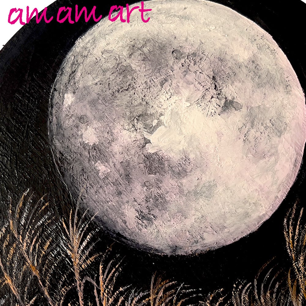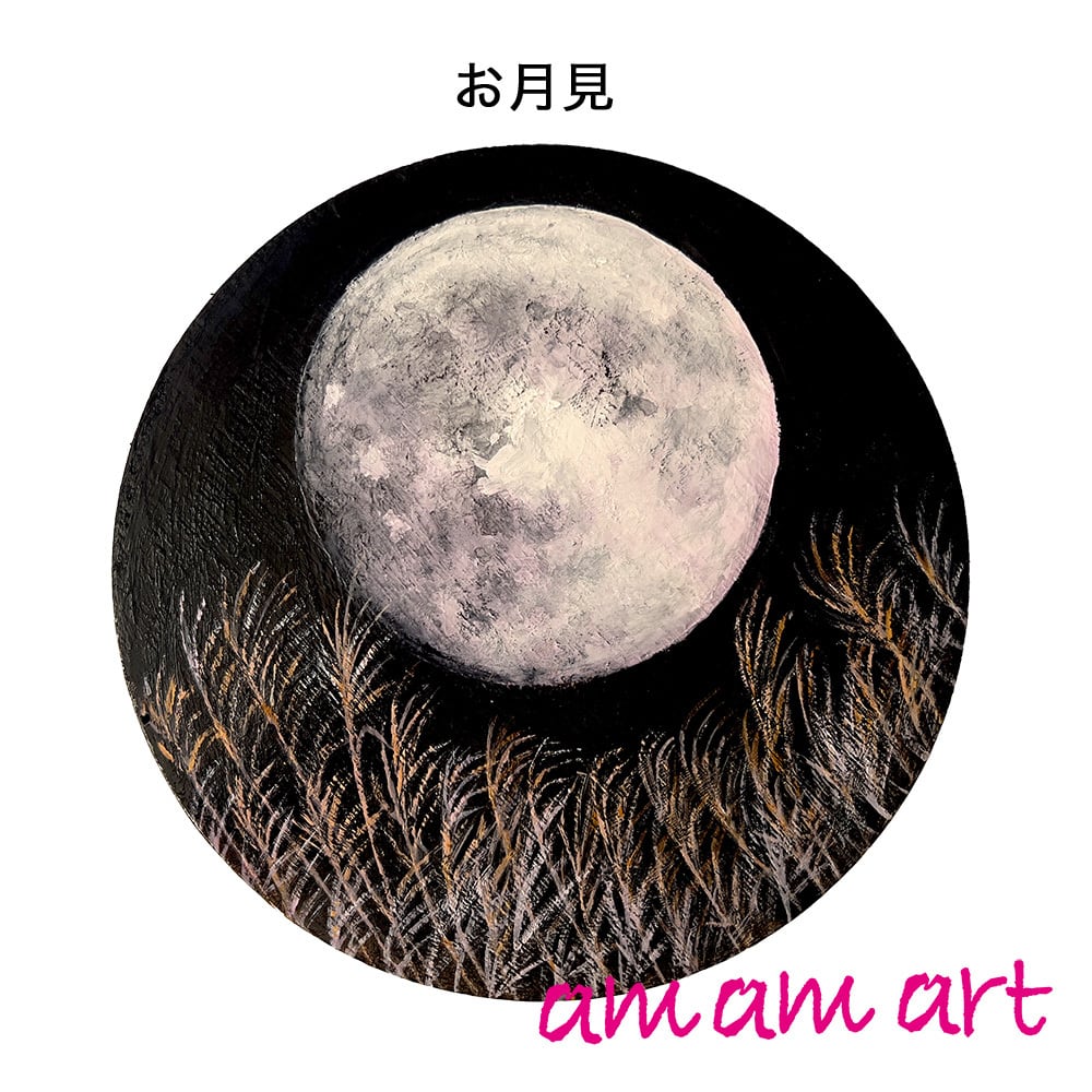 「 お月見 」 月夜 アート インテリア 木 に描く 水彩画 原画 満月 と ススキ | amamart (アムアムアート) オンリーワン アートTシャツ オリジナルデザイン 手作りアクセサリー の通販サイト