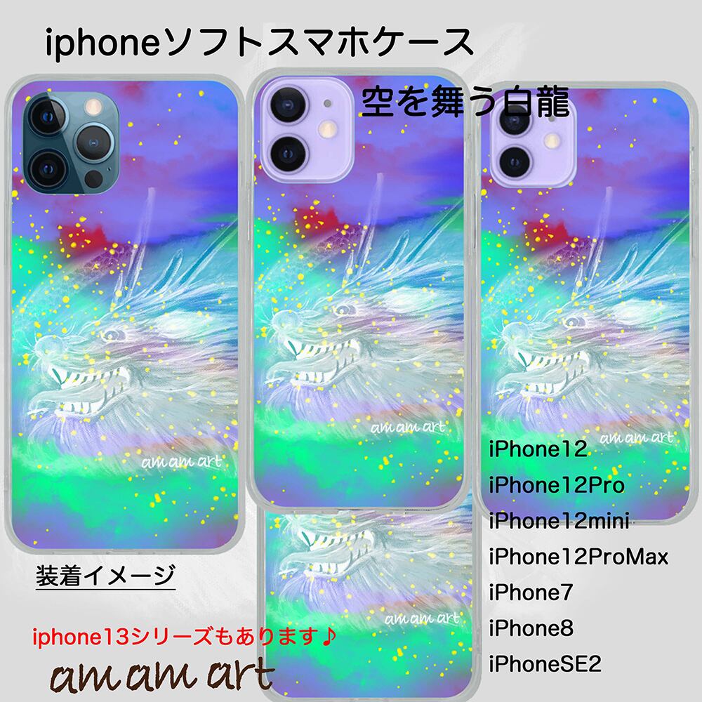 龍 iPhone 13 mini ソフトケース クリア 「 空を舞う 白龍 」 amamart オリジナルデザイン 在庫1 | amamart (アムアムアート) オンリーワン アートTシャツ オリジナルデザイン 手作りアクセサリー の通販サイト