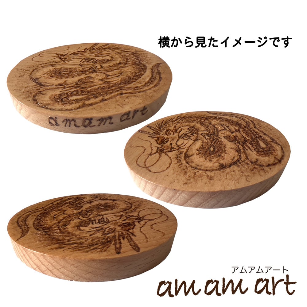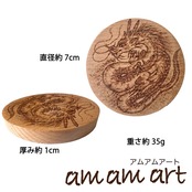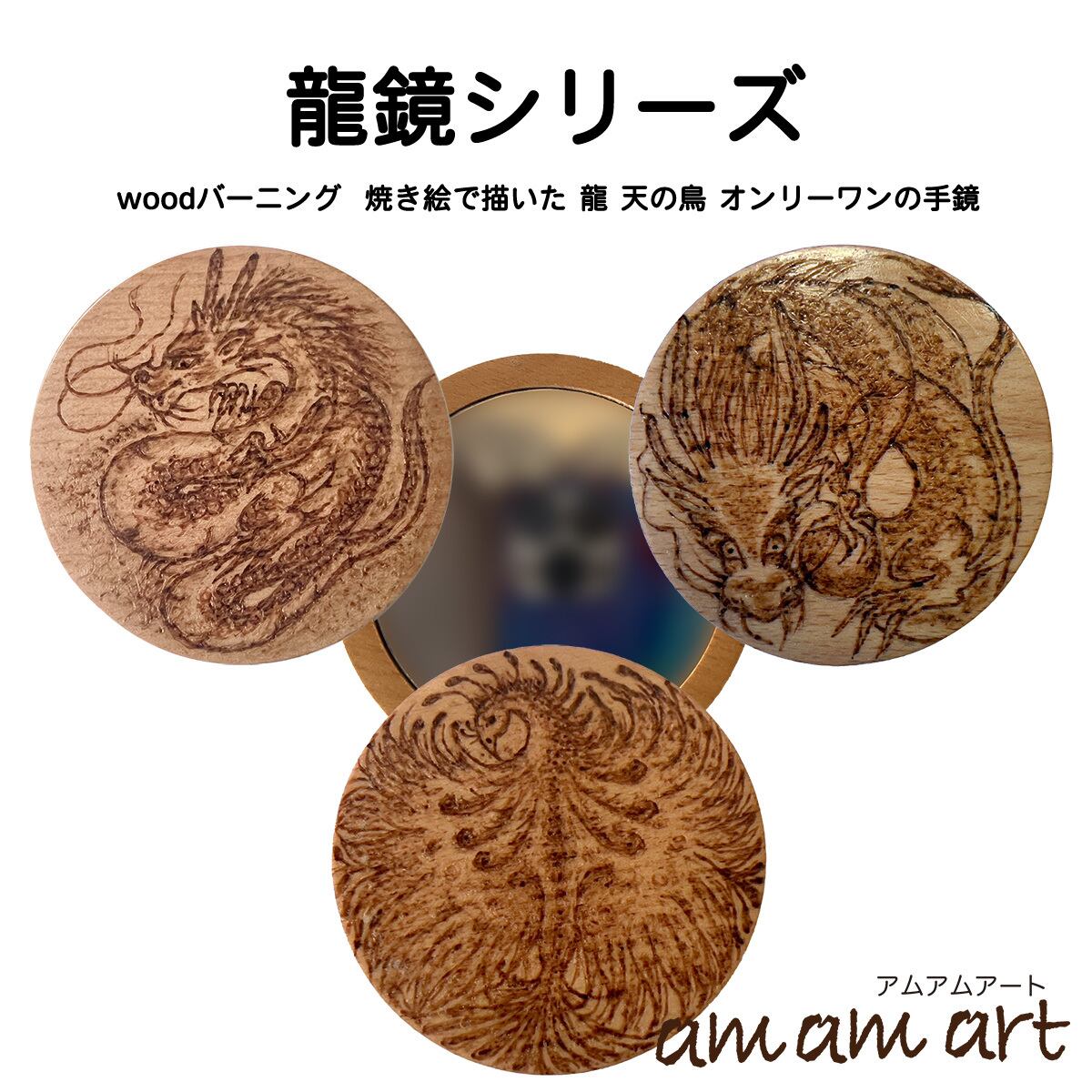 オリジナルデザイン クール シャイ 手のひらサイズ 一点もの 一点物 龍の鏡 焼き絵