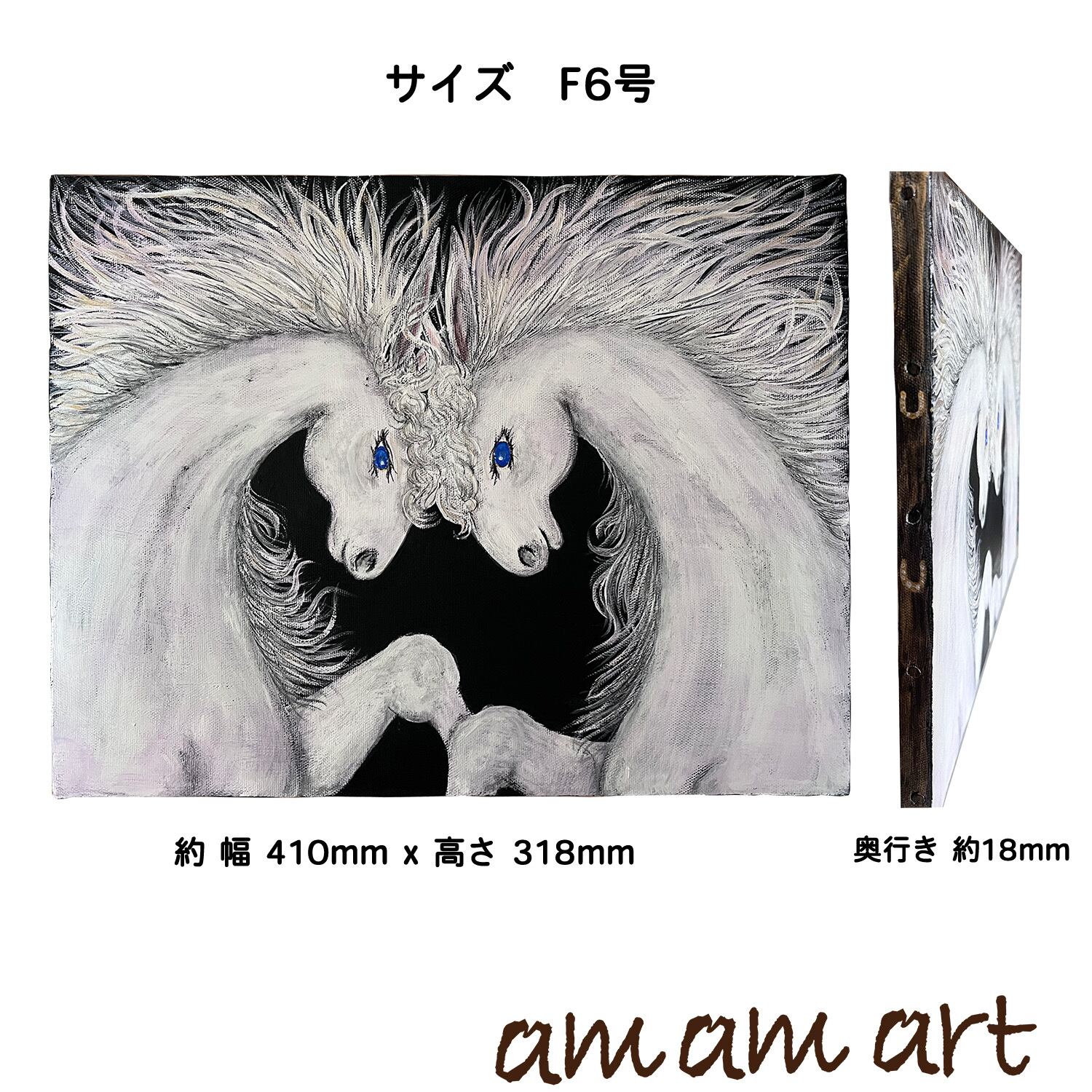 Pure love 白馬 木枠付き キャンバス に描く 水彩画 アクリルガッシュ 原画 サイズ410mmx318mm | amamart (アムアムアート) オンリーワン アートTシャツ オリジナルデザイン 手作りアクセサリー の通販サイト
