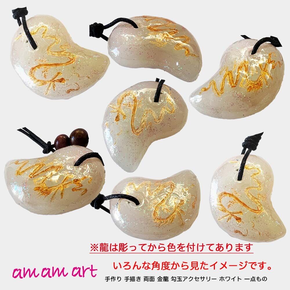 オリジナル 手作り 勾玉「龍」 金龍 ホワイト オンリーワンアクセサリー お守りにいかがですか? | amamart (アムアムアート) オンリーワン アートTシャツ オリジナルデザイン 手作りアクセサリー の通販サイト