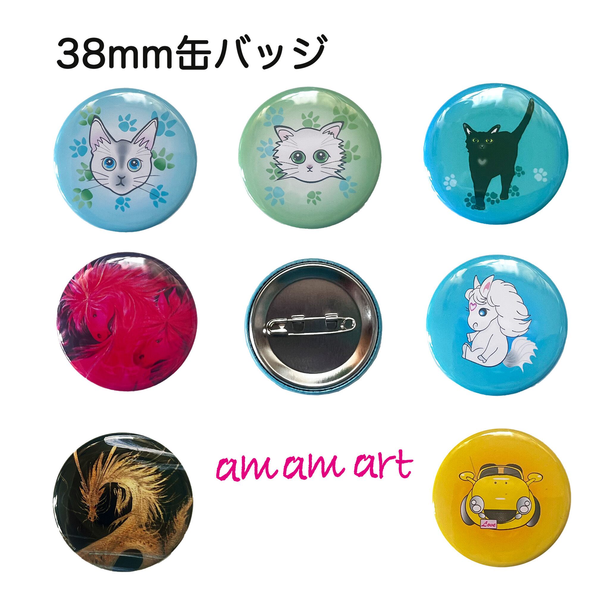 アート で キュート な 缶バッジ 猫 龍 車 馬 38mm お出かけのお供にいかがですか? | amamart (アムアムアート) オンリーワン アートTシャツ オリジナルデザイン 手作りアクセサリー の通販サイト